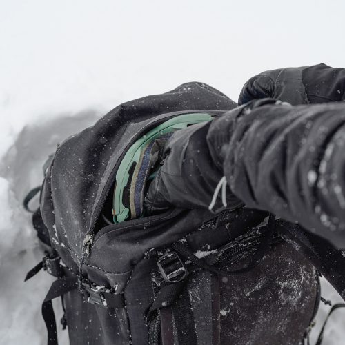 バックカントリーでの活動をサポートする、高機能なリュック。アバランチギア専用コンパートメントを搭載しているのが特徴。ショベル・プローブ・スノーソー・アイスアックスなどにスムーズにアクセスできます。