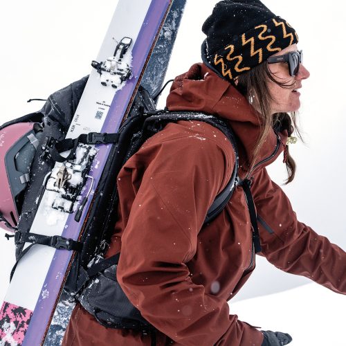 スキー・スノーボードを固定できるストラップや、ヘルメットホルダーも採用。本格的なバックカントリーを楽しむ方におすすめのモデルです。