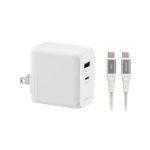 長さ1mのUSB Type-C to USB Type-Cケーブルが付属したUSB急速充電器。USB PDに対応しており、45Wの出力でスマホやタブレットだけでなく一部のノートPCなど、さまざまなデバイスの充電が行えます。