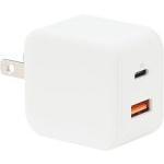 USB-Type CとUSB-Type Aの2ポートを搭載した、シンプルなUSB急速充電器。USB-Cポートは最大20WのPD規格に対応し、スマホやタブレットを高速で充電できます。