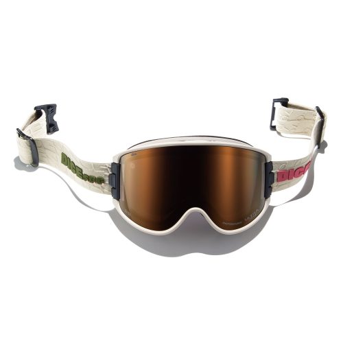調光機能と、凹凸が見やすいウルトラレンズを融合したスノーゴーグル。フォトクロミック・テクノロジーにより紫外線量に応じてレンズの明るさが自動で変化します。ウルトラライトパープルをベースに、晴天時の眩しさを軽減するブロンズミラーを採用した設計です。
