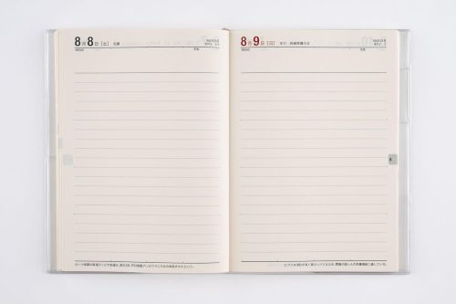 日常に溶け込むミニマルなデザインも魅力。透明カバー付きなので、ちょっとした切り抜きやメモを挟めるのも便利です。コンパクトなB6サイズで携帯性も良好。手帳を常に携帯したいという方にもおすすめです。