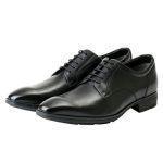 合成皮革を使用した上品なブラックカラーが特徴。ビジネススーツと相性がよく、雨天時の通勤や外回りで活躍する一足です。
