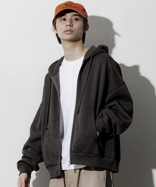 やわらかな裏起毛素材で仕上げた、シンプルなジップアップパーカー。身幅にゆとりを持たせたほどよいビッグシルエットが特徴です。