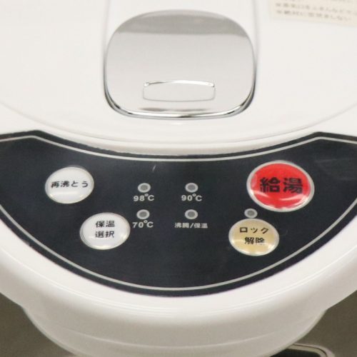 98℃・90℃・70℃の3段階で保温温度を設定でき、用途に応じて温度調節が可能。特に70℃保温は赤ちゃんのミルク作りに適した温度です。電動給湯ボタンを押すだけでお湯がすぐに注げるため、カップ麺やコーヒーなど日常使いでも手軽に利用できます。
