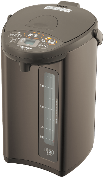 保温と再沸騰の機能を搭載しており、いつでも温かいお湯が使える便利さが魅力。操作パネル中央の大きな給湯ボタンを軽くワンタッチするだけで簡単に給湯でき、高齢の方でも扱いやすい設計です。メッキ加工の注ぎ口はお湯の出口が見やすく、本体には水量計も備えています。