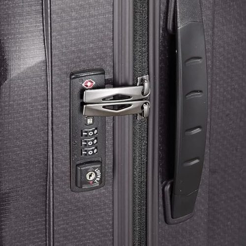 アルミフレームの深い溝を設けることで、強度を高めているのが特徴。耐久性と耐衝撃性ともに優れています。また、ダイヤル式のTSAロックを搭載しており、暗証番号を用いてスーツケースの管理が可能です。