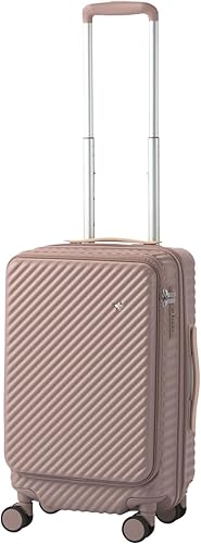立てたまま荷物を取り出せるフロントオープン機能付きスーツケースです。180°大きく開く前面扉により、横に寝かせる必要がなく、狭いスペースでも素早く荷物にアクセスできます。Mサイズは高さ約64.5×幅約43.5×奥行約27cmで、4~7泊に対応できる容量です。