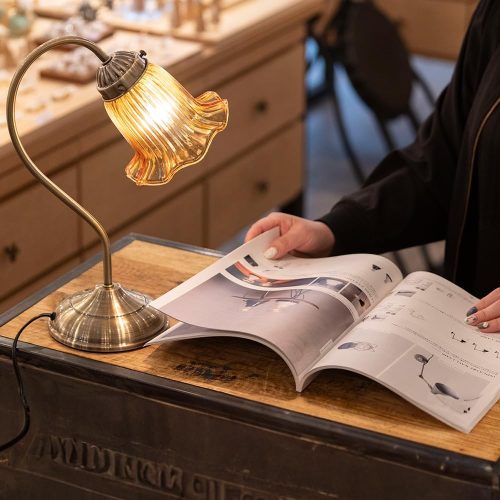 真鍮メッキとガラスシェードが特徴のアンティーク調テーブルランプ。北欧テイストの空間にもよく馴染むおしゃれなデザイン。インテリアに合わせて選べる3色のカラー展開も魅力です。