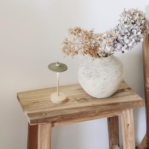 キャンドルライトのような心地よさを演出するテーブルランプ。有機的でやわらかい明かりが空間をあたたかく照らします。コードレス仕様のため、リビングやベランダなど好きな場所へ手軽に持ち運べるのが魅力です。