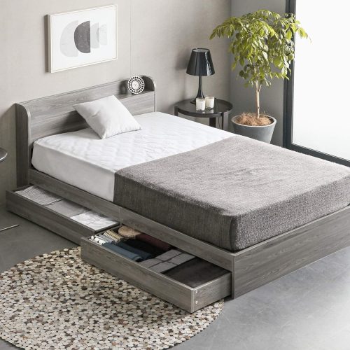 ベッドの下に引き出しなどの収納機能を備えたタイプです。衣類やリネン類を整理整頓できるため、余分なタンスを置く必要がなくなり部屋を広く使えます。引き出しの数は製品によって異なり、荷物の量に合わせて選べるのがポイントです。