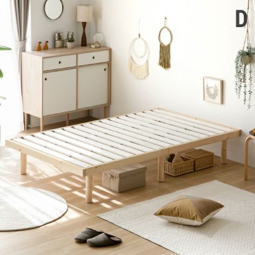 天然木パイン材を使用したぬくもりのあるすのこベッド。北欧らしいシンプルなデザインで、寝室をおしゃれに演出します。すのこ構造により通気性に優れ、湿気がこもりにくく快適な睡眠環境を保てるのが魅力です。