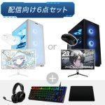 配信環境を一度に整えられるゲーミングPC一式セット。ハイエンドPC本体とモニター・キーボード・マウス・ヘッドセット・Webカメラがそろい、届いたその日から配信を始められます。