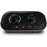 マイク/ライン入力を2系統備えているだけでなく、MIDI入出力端子も付いている安いオーディオインターフェイスです。マイクでボーカルを録る際に加えて、エレキギターやドラムマシーンなどのサウンドを録音する場合にも使用が可能。パソコンとの接続にはUSB Type-C端子を使い、バスパワーで駆動する設計です。