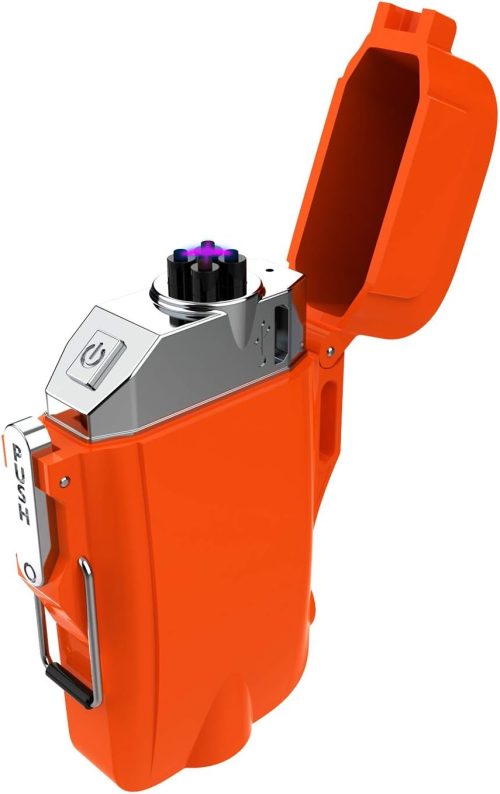 風や雨に強く、アウトドアでの使用に適したUSB充電式のプラズマライター。防水・防塵機能を備え、さまざまな自然環境で安心して使用できるのが特徴です。