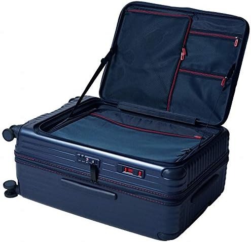 フロントポケットからメイン収納へ直接アクセスできる軽量スーツケースです。パソコンやタブレットを収納できるクッション付きポケットを内蔵し、ビジネス利用にも便利。キャスターストッパー機能により、電車や傾斜地での移動も安心です。