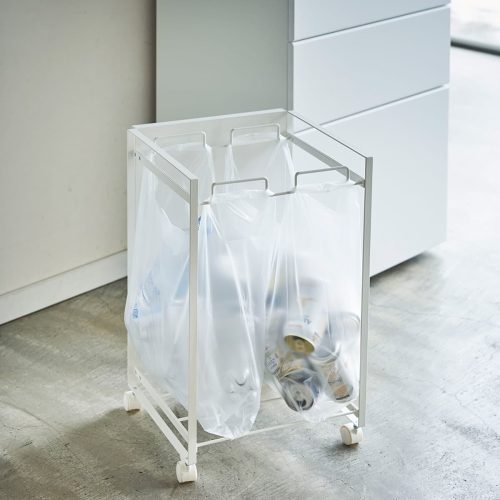 コンビニやスーパーのレジ袋を引っ掛けて使用でき、専用の袋を購入する必要がないのもポイント。また、底面には予備のゴミ袋を収納できるスペースも備えています。ハンドル付きで袋の交換も簡単なので、日々のゴミ出しをスマートにこなしたい方におすすめです。