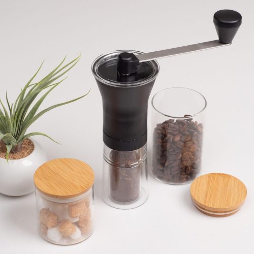 手動コーヒーミルを選ぶ際は、一度に挽ける量をチェック。コーヒー1杯あたりに必要な豆の量は10〜15gが目安です。多くの製品は1〜2杯分にあたる20g程度の容量なので、1人で飲むのにちょうどよいサイズ感です。