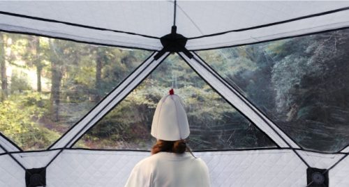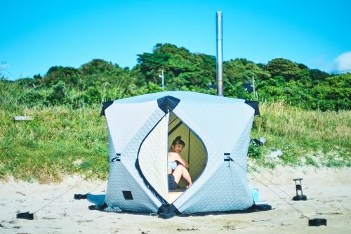 テントはポップアップ式で、慣れると短時間で設営可能。室内は最大4人が快適に過ごせる広さです。保温性に優れた素材を採用しているのもポイント。仲間と集まってサウナを堪能したい方におすすめです。
