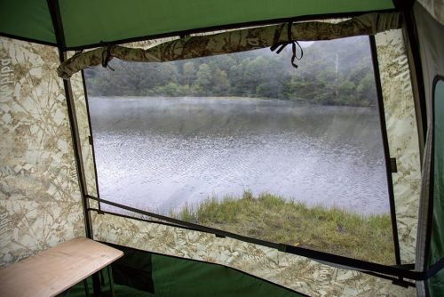 約1分で設営できると謳う、4人用のポップアップ式サウナテント。300Dオックスフォードクロスに中綿を封入した生地を採用しています。耐水圧2000mmの防水撥水仕様で、難熱性も備えているのが魅力。天井3か所・側面3か所の窓は綿ファスナー式の遮光布と一体化しており、換気量や採光を自在に調節できます。