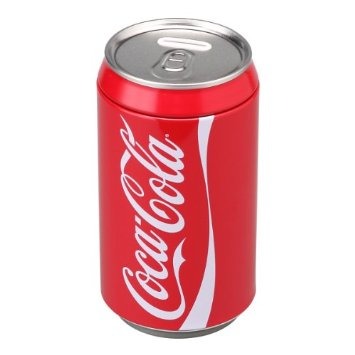 ブリキ製の缶タイプで、リアリティの高いコーラ飲料のデザインが特徴の貯金箱。一般的なコーラ飲料などの缶ジュースと同じく天面にステイオンタブがあり、投入口も備わっています。