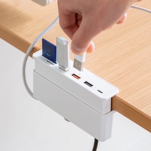 デスク周りをすっきりさせたい方には、設置方法に工夫がある製品がおすすめ。クランプ式のハブはデスクの天板に挟んで固定でき、省スペースで安定感があります。片手でUSBの抜き差しがしやすいのも魅力です。