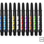 高い強度を有するダーツシャフト。カラーバリエーションを豊富にラインナップしており、見た目のカスタマイズを行いやすいのがメリットです。精密加工されたシャフトリングが付属しているので、フライトをしっかりグリップできます。