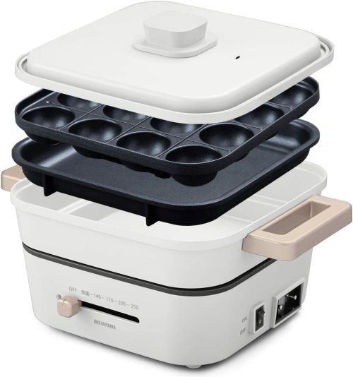 3種のプレートで煮込み料理・焼き料理・たこ焼きを堪能できる、一人暮らしにもおすすめのグリル鍋。深鍋プレート・平面プレート・たこ焼きプレートが付属し、鍋料理から焼肉、たこ焼きパーティーまで幅広く活躍します。容量は約3.2Lで、1~2人用としておすすめです。