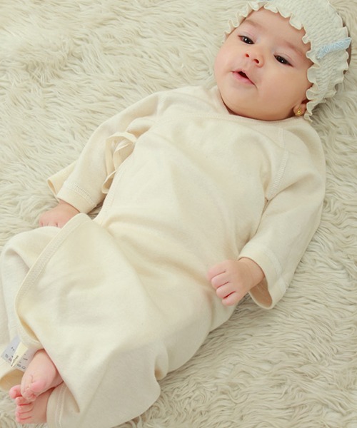 オーガニックコットン100%素材を使用した長肌着です。丁寧な縫製によって縫い目の段差を抑え、なめらかな着心地に仕上げています。生地がやわらかく、着替えさせる際にも扱いやすいのがポイントです。