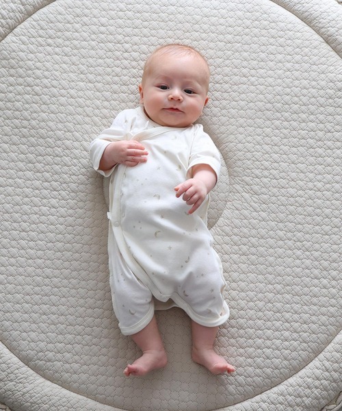スカートのように股下が開いており、おむつ替えをスムーズに行えるのが魅力。足を活発に動かし始めると裾がはだけやすくなるため、新生児から生後3ヶ月頃までの使用がメインです。