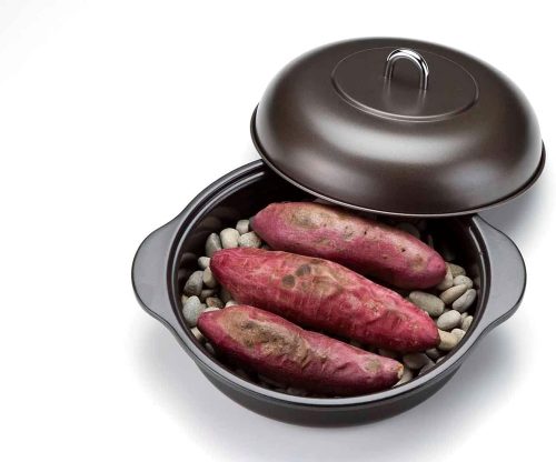 さつまいも以外に、じゃがいもやとうもろこしも調理可能。コンロの直火とオーブンに対応しており、手軽に使えるのも魅力です。家族や友人と、あつあつの味覚を楽しみたい方に適しています。