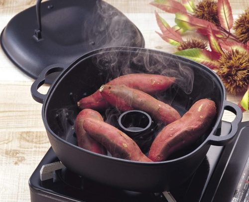 自宅で手軽に本格的な焼き芋を作れるアイテム。厚みのある南部鉄器ならではの高い蓄熱性が特徴です。蓄えた熱がさつまいもにじっくり伝わり、素材本来の甘みを引き出します。