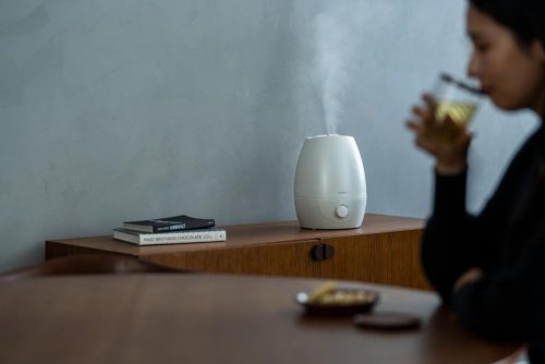2つの吹出口はそれぞれ回転し、ミストの向きを調整できるのもメリット。アロマトレーにアロマオイルをたらせば、香りと潤いを同時に楽しめるのも魅力です。機能性が高く衛生的に使える加湿器を探している方に適しています。