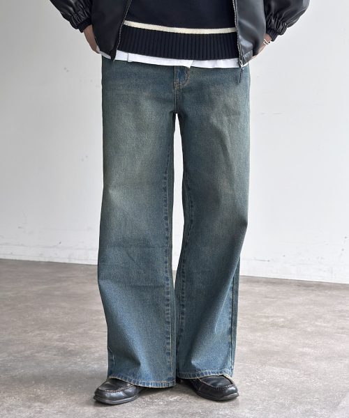 アルフレッドアレックス(Alfred Alex) Chemical Wash Wide Tapered Denim Pants