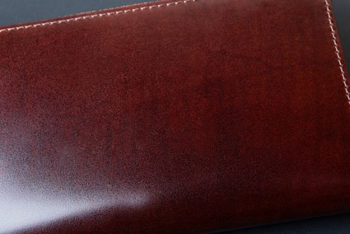 重厚感と艶のあるオイルコードバンを贅沢に使用した小さい長財布。イタリアンレザーも組み合わせ、高級感と耐久性を両立しているのが魅力です。携帯しやすいサイズながら、1万円札を折らずに収納できる設計もポイントです。