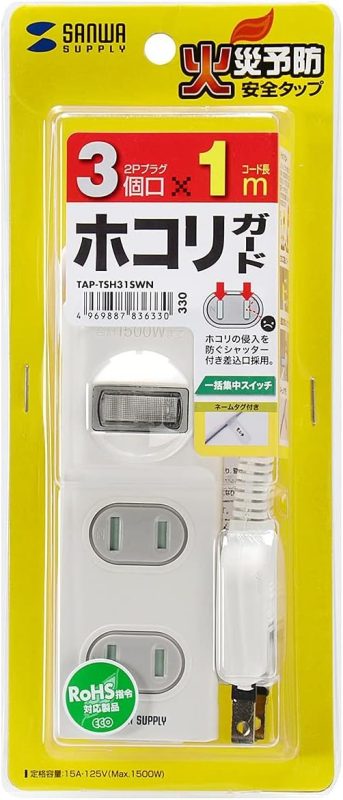 サンワサプライ(SANWA SUPPLY) 火災予防安全タップ 2P・3個口・1m TAP-TSH31SWN
