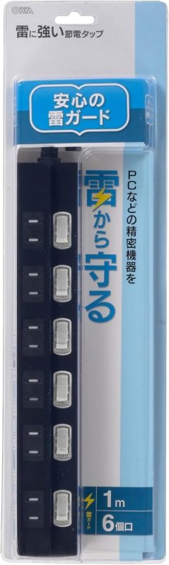 オーム電機(OHM) 電源タップ 雷ガード 6個口 1m HS-TPK61PBT-K 00-6944