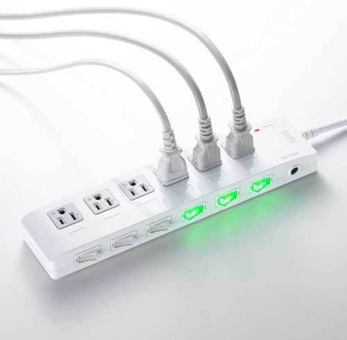 雷からPCや精密機器を守る、スイッチ付き電源タップ。雷サージ軽減素子を内蔵しており、突然の雷による電圧変動から接続機器を守る効果が期待できます。個別スイッチ付きで、使わない機器の電源だけを切れるのが魅力。待機電力の削減に重宝します。