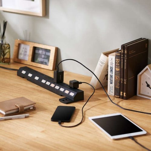 なかには、差込口を個別に回転させて角度を調整できる便利なモノも。設置場所や接続する機器に合わせられる使いやすい形状の製品を選ぶと、デスク周りが整います。