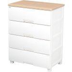 木目調の天板とマットな質感のパネルで構成された、おしゃれな4段タイプのチェスト。サイズは約幅56×奥行42×高さ81cmで、ウォークインクローゼットにも配置しやすいのが特徴です。