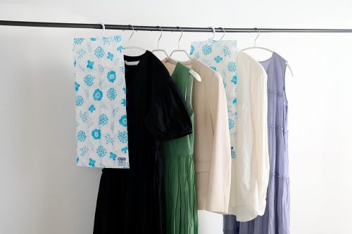 袋から取り出してそのままクローゼットに吊り下げるだけで設置が完了。防虫剤との併用も可能で、大切な衣類を湿気とニオイから守る環境を手軽に整えられます。