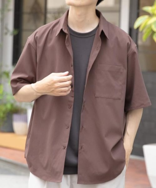 シップス カラーズ(SHIPS Colors) ノーアイロン ウールライク ワイドカラー ショートスリーブ シャツ