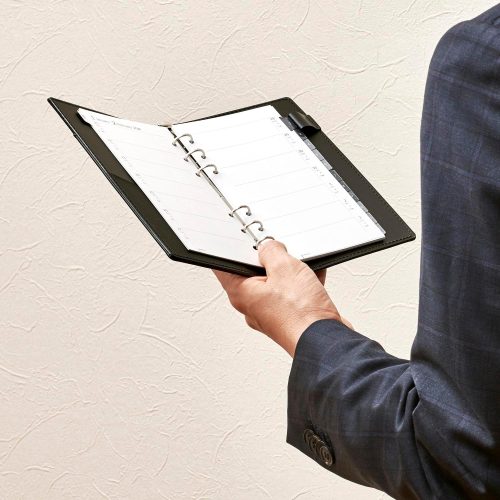 大きさは約120×80mmで、ミニサイズ6穴のシステム手帳に対応。ビジネスからプライベートまでしっかり活用したい方におすすめです。