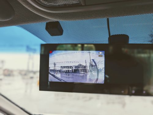 運転中の視界を確保したい方には、ルームミラーに取り付けるミラー型のドライブレコーダーが人気です。既存のミラーと一体化するため、フロントガラス周りがスッキリするのが魅力。視界を遮らず、運転に集中できます。