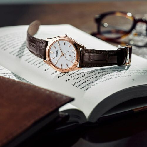 厚さ1mmの極薄ムーブメントを用いたドレスウォッチです。ケースの厚さはわずか4.5mm。ケースの側面を丸めつつピンクゴールドでカラーリングすることで、大人のエレガンスを表現しています。