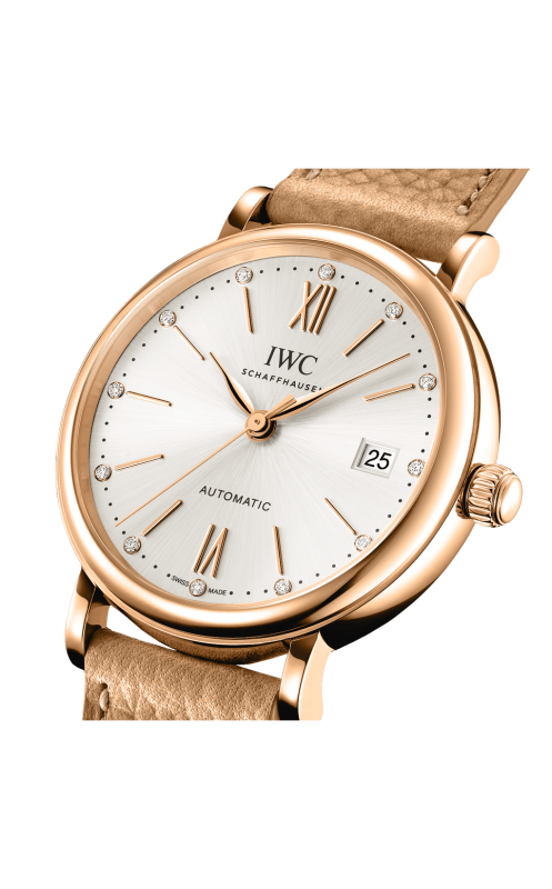 サファイアガラスの透明な裏蓋が特徴のドレスウォッチです。IWC自社のキャリバー32111の精密な機械式ムーブメントを眺めて楽しめるのが魅力。18Kレッドゴールドのケースはあたたかみのある輝きで、腕元に上質な存在感を与えます。