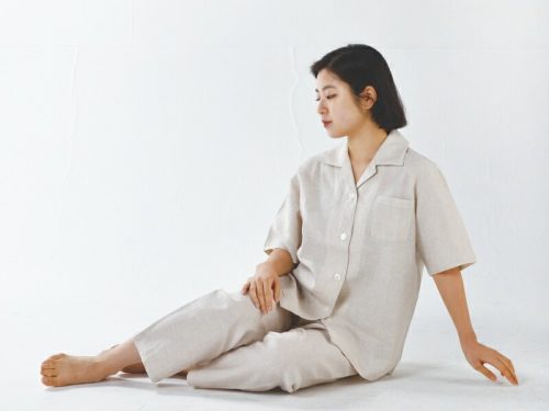 カラーはホワイトとオートミールの2色展開。国産リネンを使用したおすすめのレディースリネンパジャマです。