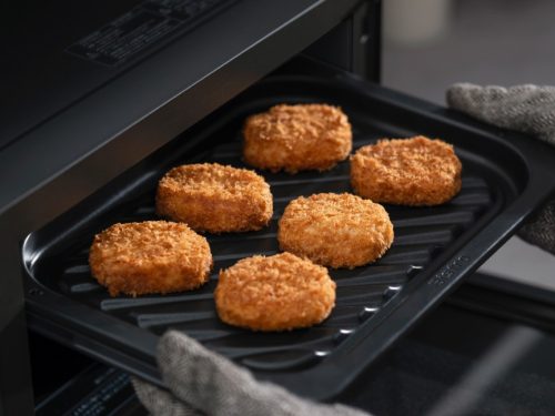 「揚げ物サクレジ」機能を使えば、買ってきた揚げ物も外はサクサク、中はアツアツの状態にあたため可能です。また、付属の深型焼きプレートでは大皿料理も手軽に調理できます。100℃から250℃までの温度に対応しており、料理の幅も広げられるのがメリットです。