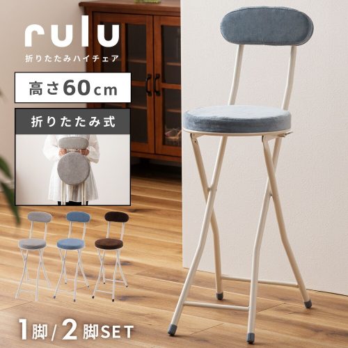 折りたたみ式のおしゃれな丸椅子です。座面は約60cmと高めで、キッチンでの作業やカウンターテーブルなどに使いやすいアイテム。背もたれ付きのため、うしろに体を預けてゆったりと座れます。