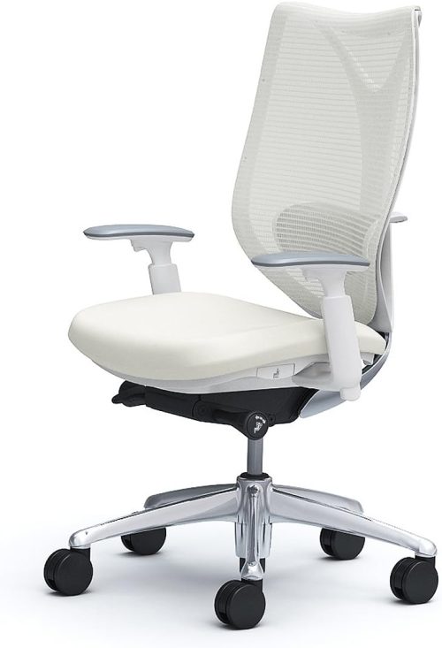 流れるような美しいフォルムが特徴の白いオフィスチェアです。背もたれにはメッシュを採用し、リングフレーム構造で優しく心地よい座り心地を実現。見た目におしゃれなのもおすすめのポイントです。